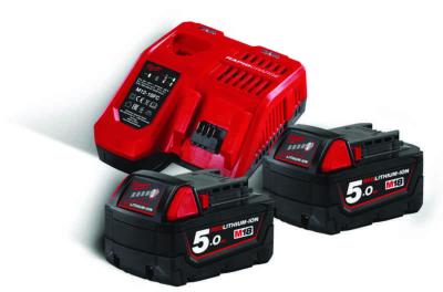 M18 5,0 Ah REDLITHIUM-ION™ batterikit: 2 x M18 5,0 Ah REDLITHIUM-ION™ batterier och en M12-18FC snabbladdare (59 min.).