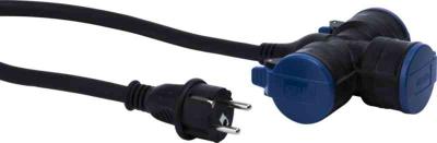 3-way power outlet with cable H07RN-F and self-closing cover. Molded for strength and safety. Approved for outdoor use.