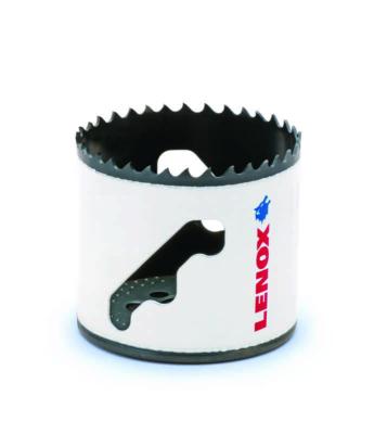 Made of splinter-free bi-metal. High-alloy high-speed steel in the tooth edge, tough tool steel in the back. Saws wood, plaster, stainless steel and other metals including cast iron. Progressive patented T3 toothing with specially shaped teeth that provide less vibration and smoother cutting. Thicker goods increase durability and reduce the risk of teeth breaking. The design of the teeth means that Lenox T3 hole saws cut up to 2 times faster than other hole saws. The specially hardened teeth have been shown in tests to retain their sharpness up to 50% longer than other types of hole saws. Painted in white special color on the outside. The T3 hole saw also features a unique patented SPEED SLOT® step construction for faster and easier plug removal. The T3 has 50% longer life than the previous generation (T2) Lenox hole saws.