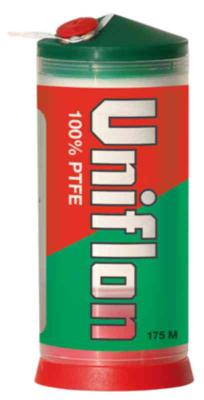 UNIFLON is a 100% pure PTFE thread sealing thread, extremely versatile and easy to use. It is resistant to almost all known liquids, gases and chemicals. Approved according to EN 751-3 for drinking water and gas and BAM-approved for oxygen. Recommended temperature range from -200 °C to 240 °C. Uniflon is a dynamic seal that adapts during installation and creates a perfect sealing surface when PTFE forms a continuous film of exactly the right thickness between non-sealing surfaces.