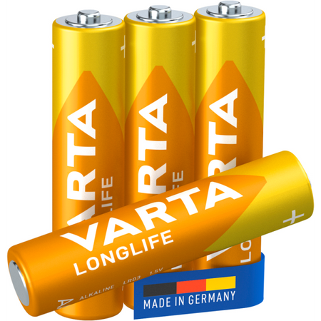 Varta Longlife 1,5 V AAA alkaline-batteriet är tillverkat i Tyskland och utmärker sig genom sin pålitliga prestanda. Det är perfekt för enheter med jämn eller låg strömförbrukning, såsom fjärrkontroller till TV och stereo, väggklockor, radioapparater och musikenheter med mera. Batterierna levereras i en användarvänlig förpackning där de enkelt kan tas ut individuellt. Det bästa är att de har en imponerande lagringstid på upp till 10 år.