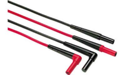 Testsladdar för DMM (röda, svarta) med säkerhetsskärmade 4 mm banankontakter. Rätvinklad kontakt i den ena änden och rak kontakt i den andra.